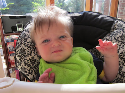 He just started making this funny noise and when I looked over I saw his little lips vibrating and all of this drool flying around. So, of course, I blew back at him. That really got him going! He thought that was hilarious and would make noise back whenever I did it at him.