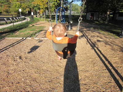ReplyDeleteI love the cute little pumpkin outfit! Jarrett looooves to swing too!