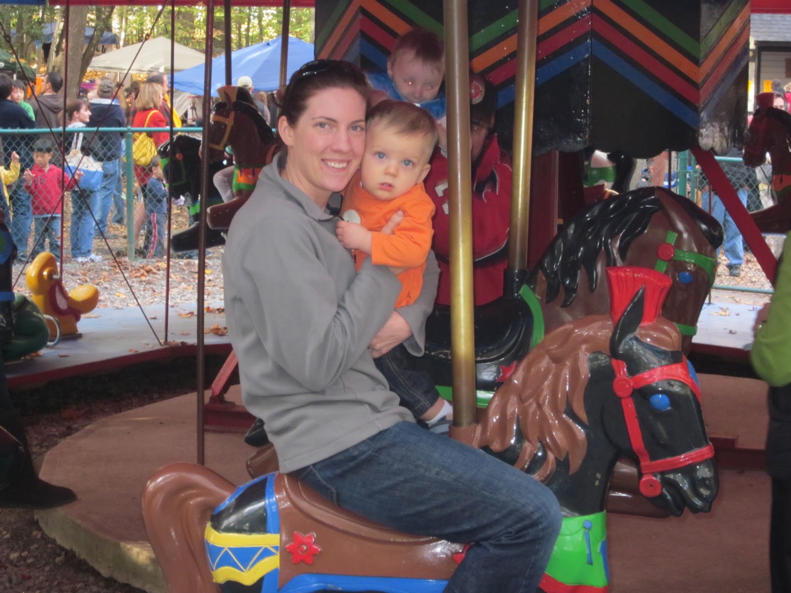 Isn't it 10x more fun to go with the babes? How fun - his first carousel ride!!!! And isn't that always the way it goes? The good pic of the babe is the bad pic of the grown-up? haha
